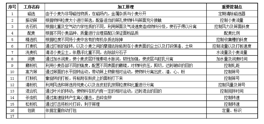 面粉加工機(jī)械各個工序加工原理及重要管制點(diǎn)